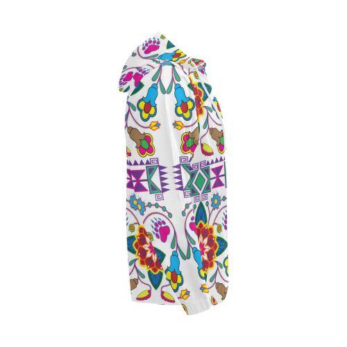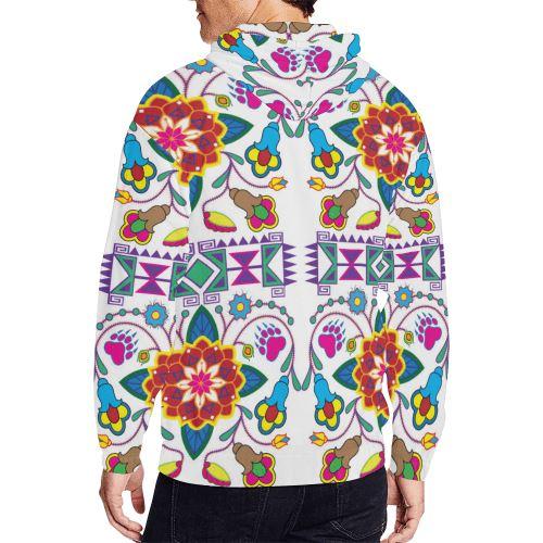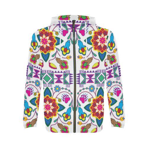 Geometric Floral Winter-White Full Zip Hoodie for Men