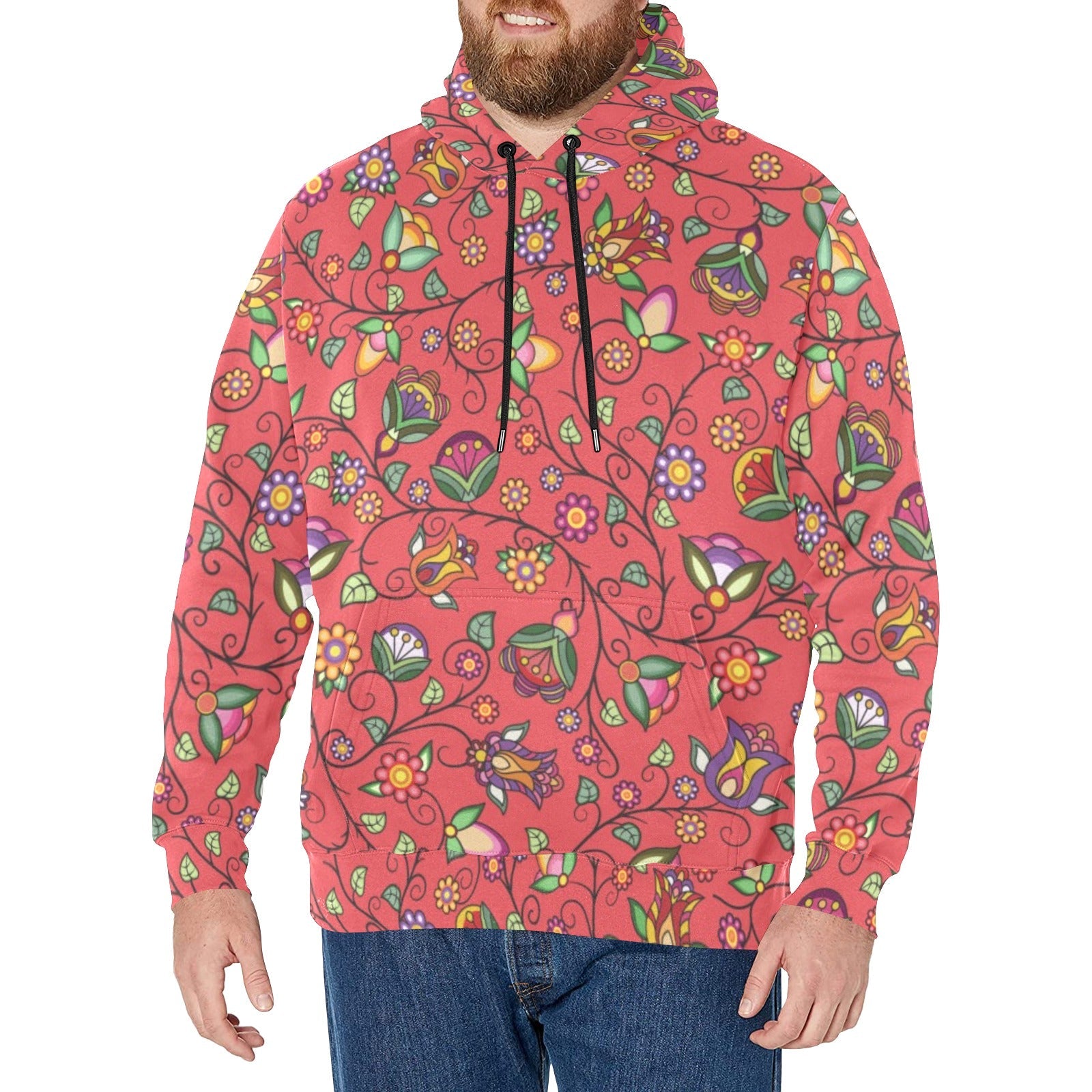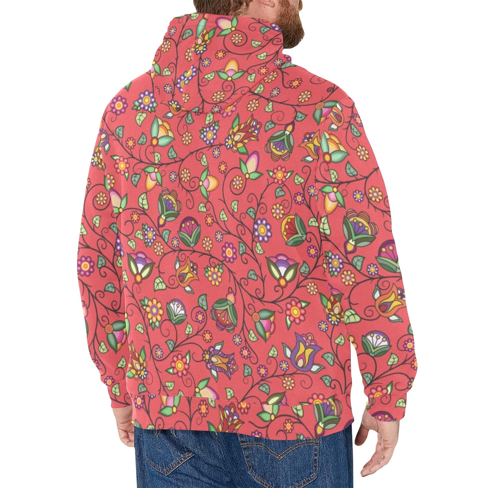 Heartbeat Petals Red Men's Long Sleeve Fleece Hoodie