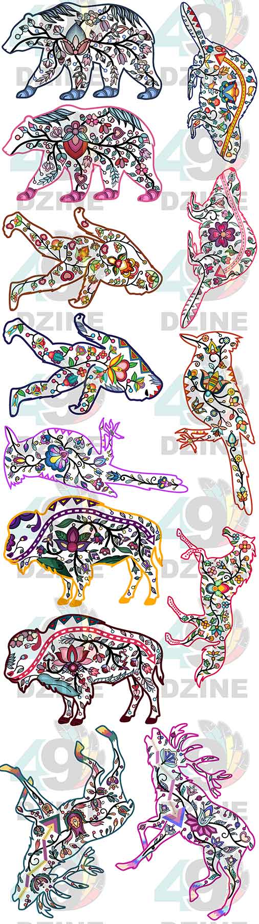 These transfer applique are just like screen prints. You can iron them or heat press them to fabric items. They'll work great on regalia, ribbon skirts, cloth bags, most fabrics, some leathers. If you follow the care instructions, they should last for more than 50 washes. We have created videos and instruction sheets to make them as easy as possible to apply. We also include test transfers you can practice on until you get comfortable applying them. We recommend using teflon sheets when pressing, but you can also use parchment paper. They will save you so much time when making regalia, or dressing up your ribbon skirt. They work great in place of embroidery or traditional silk-screening.