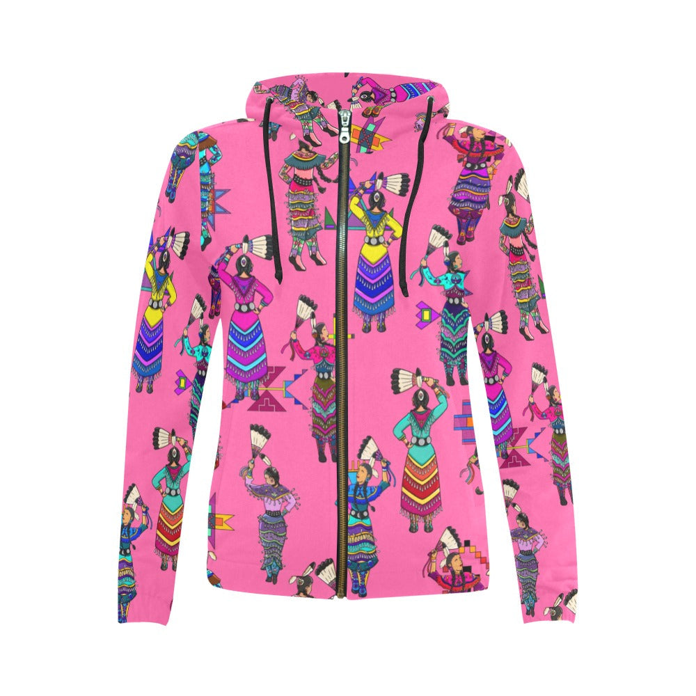 Women's Jingle Dancers Pink Full Zip Hoodie for Women
